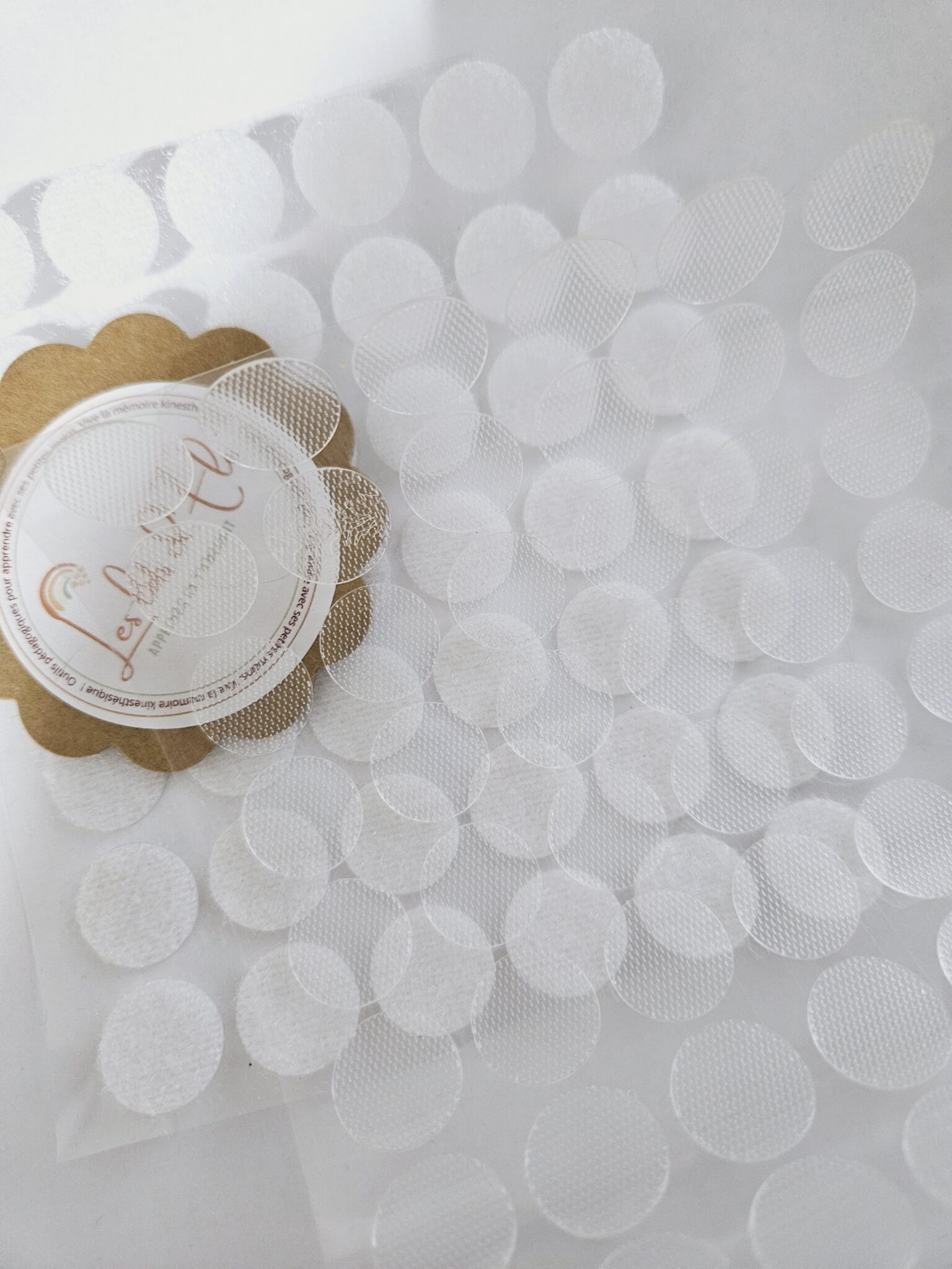 Ces 120 /240 paires de velcros transparents mesurent 1,5 cm de diamètre.