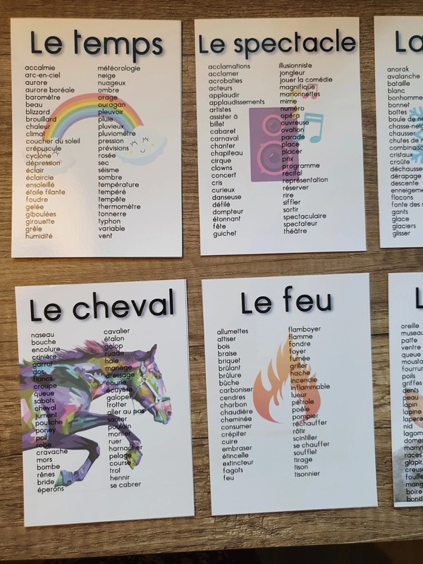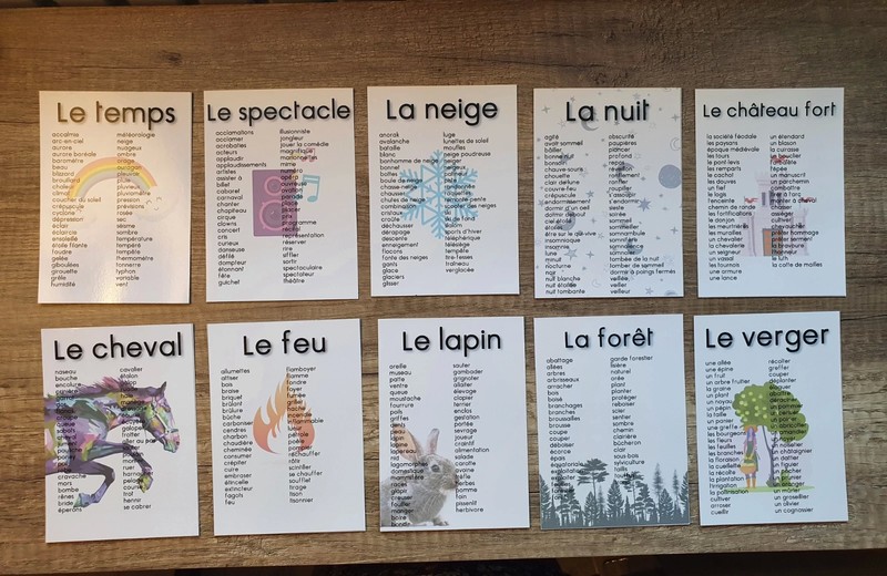 Il se compose de dix cartes qui permettent de travailler le vocabulaire associé à ce mot