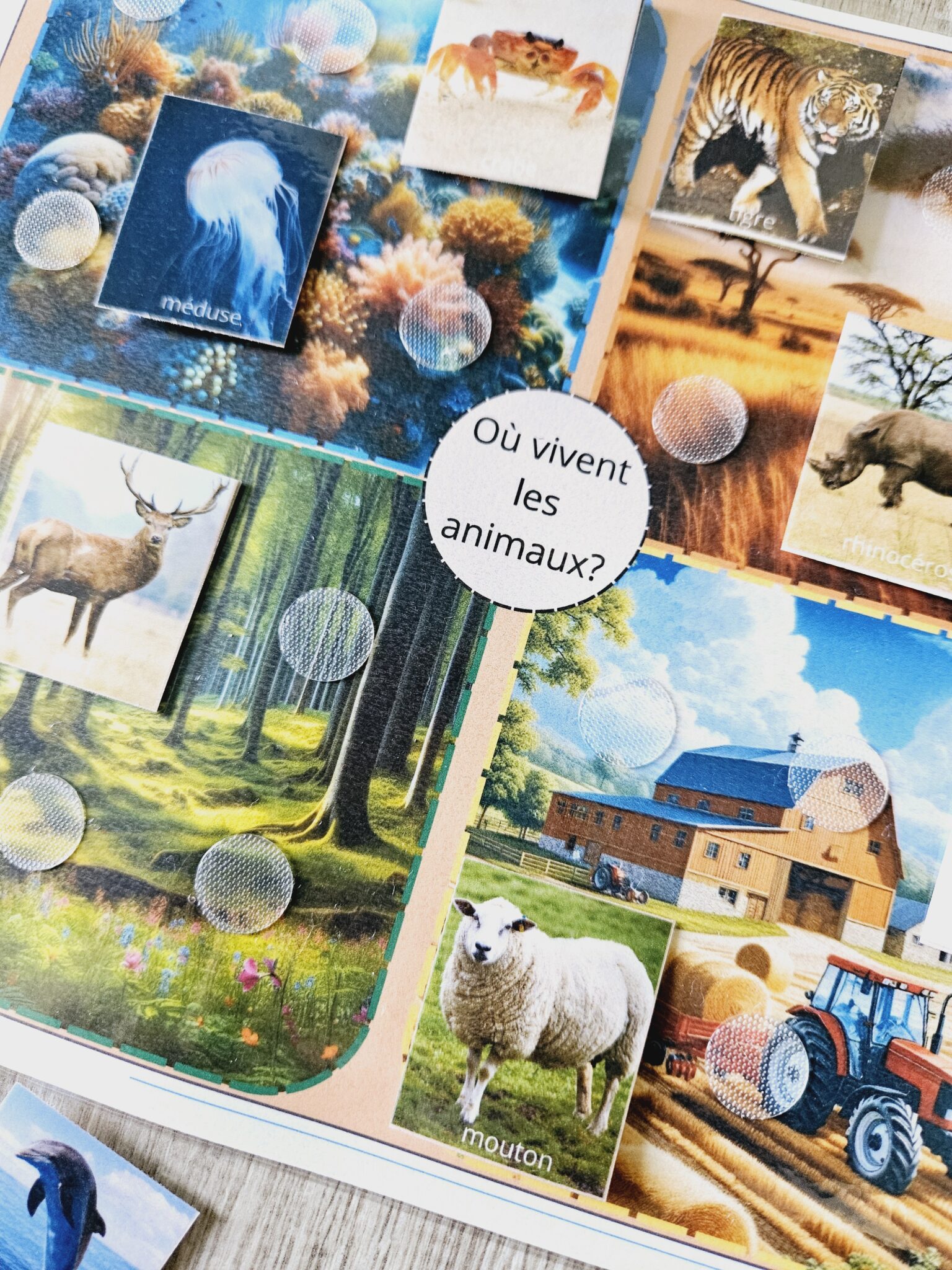 Découvrir associer des animaux à leurs habitats naturels tout en développant sa motricité fine et sa concentration.