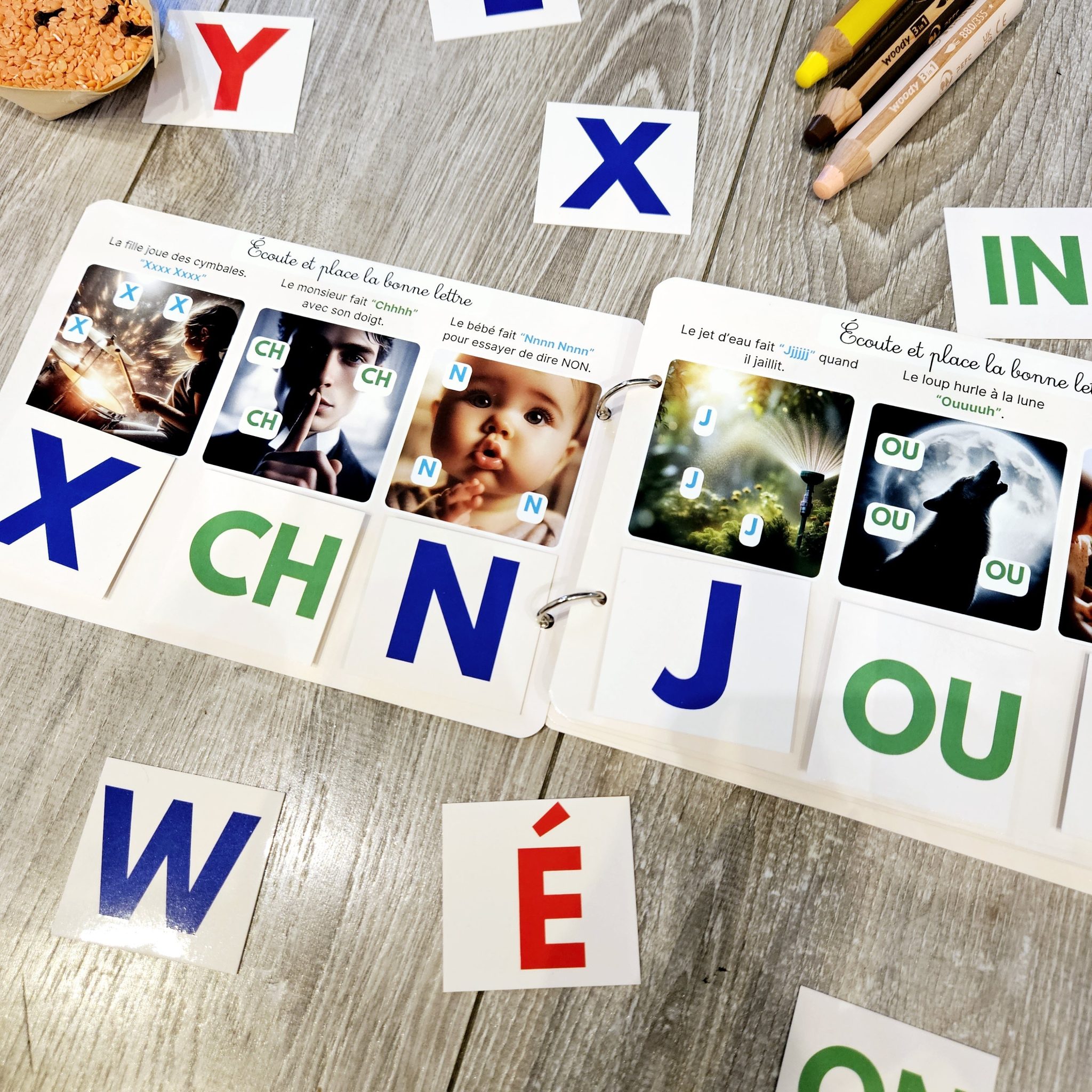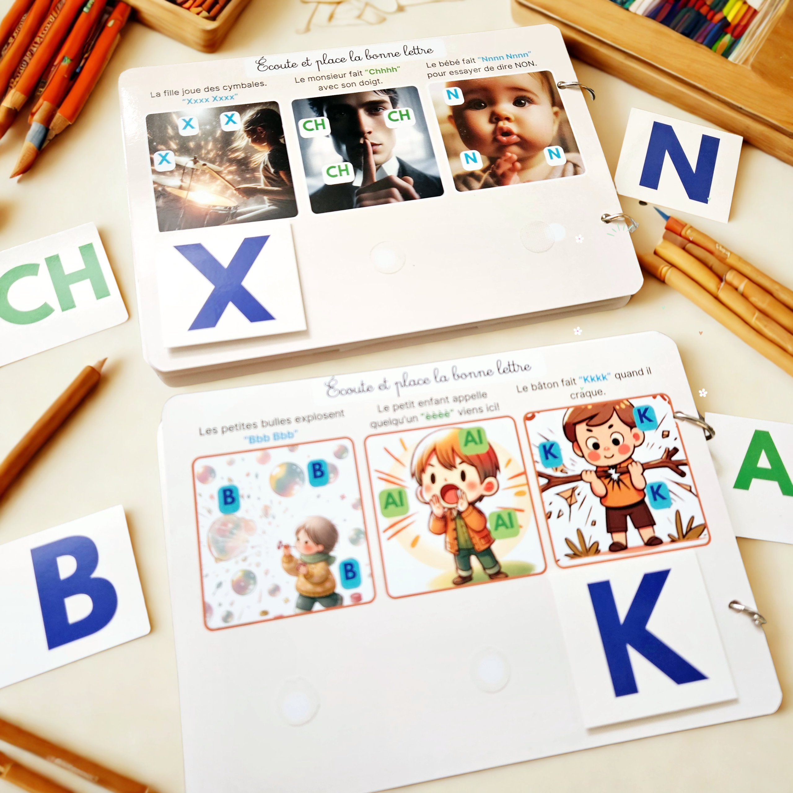 Ici, on ne “récite” pas les lettres : on écoute le son, on le vit dans une situation parlante, on le touche, on le répète, et on le manipule.
