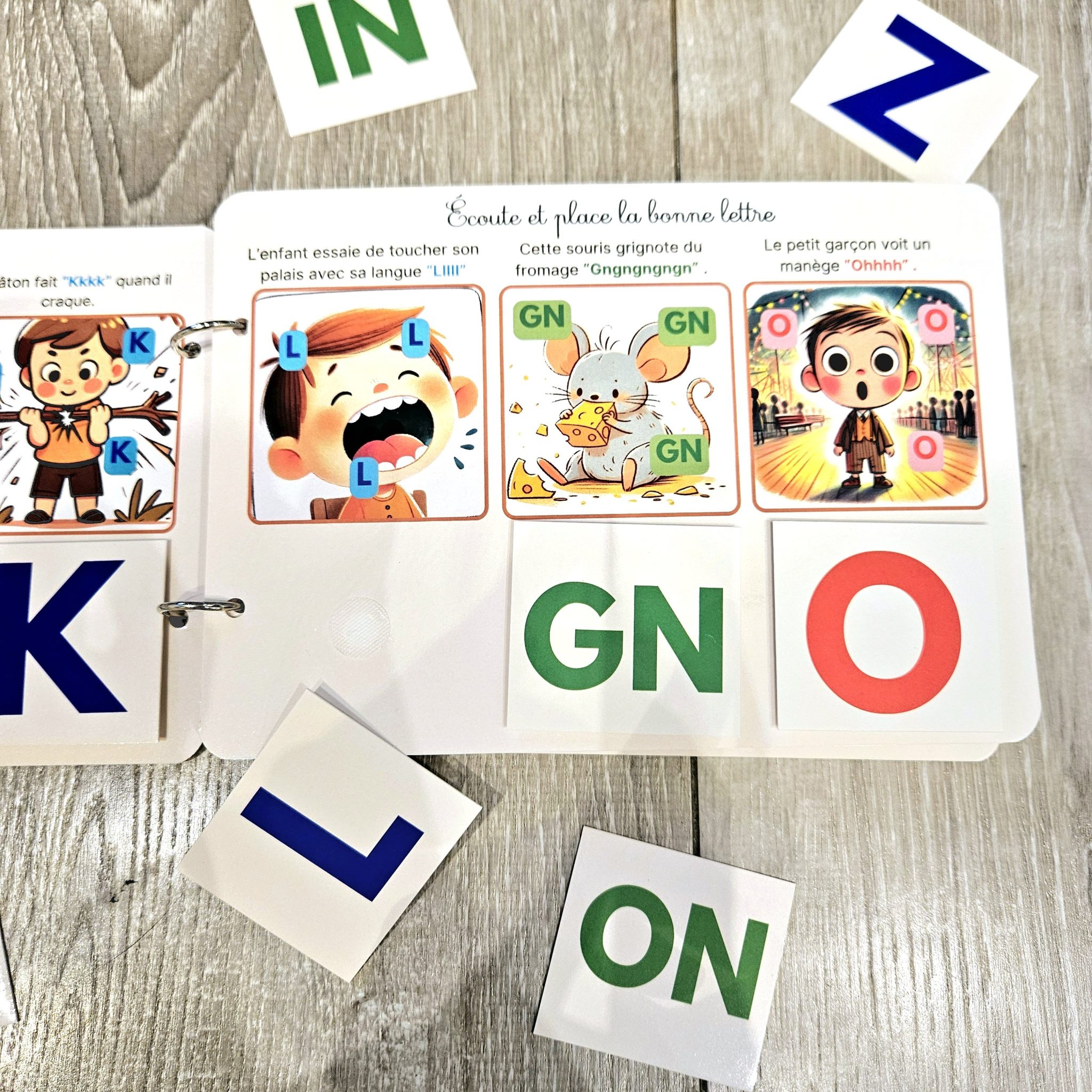 ✔️ Un livret illustré de 14 pages d’activités son-lettre