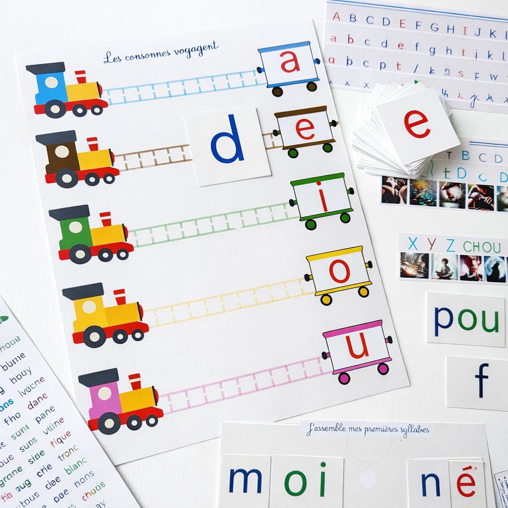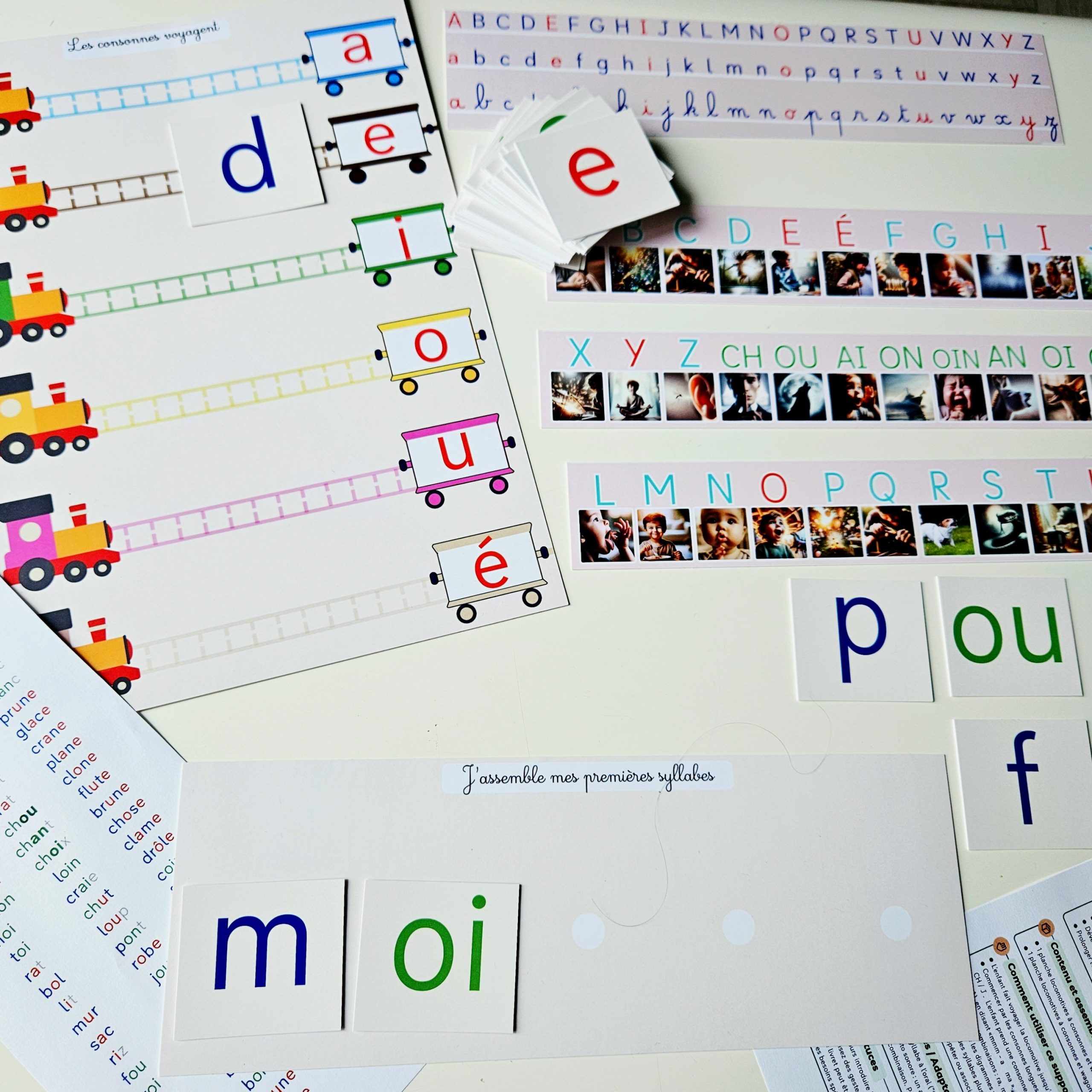 Des outils pour assembler ses premières syllabes et comprendre comment les sons s’unissent pour former des mots, étape 3 du pack lecture “Mon chemin vers la lecture”.