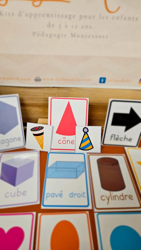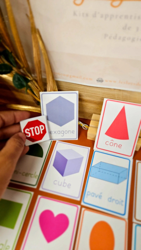 Un jeu de 61 cartes pour apprendre à reconnaître, nommer et associer les formes géométriques aux objets du quotidien.