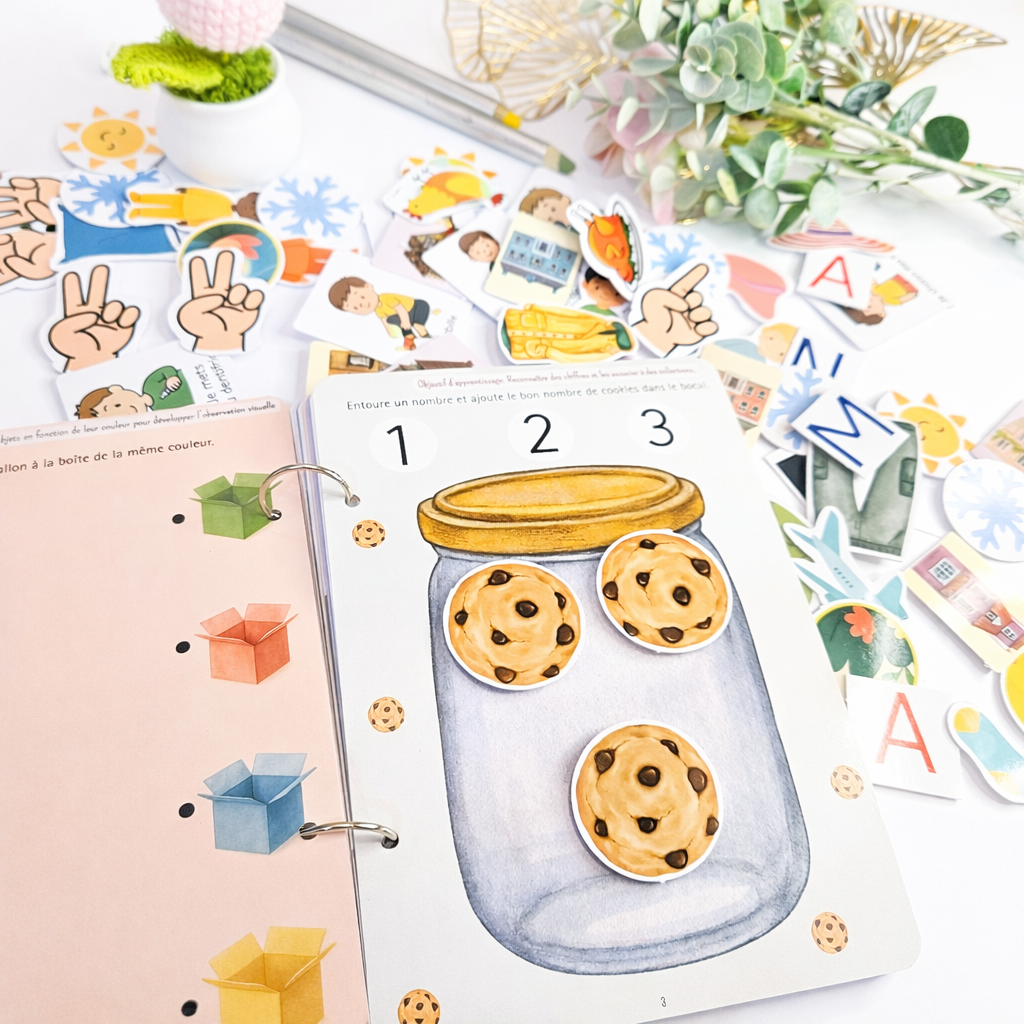 ✂️ Livret en kit : Livret cartonné avec les 55 pièces à découper et à scratcher (velcros compris).