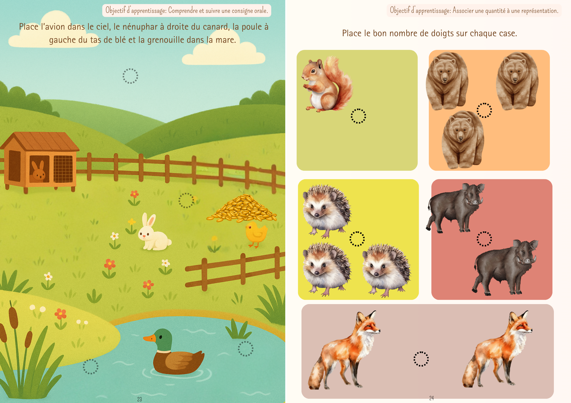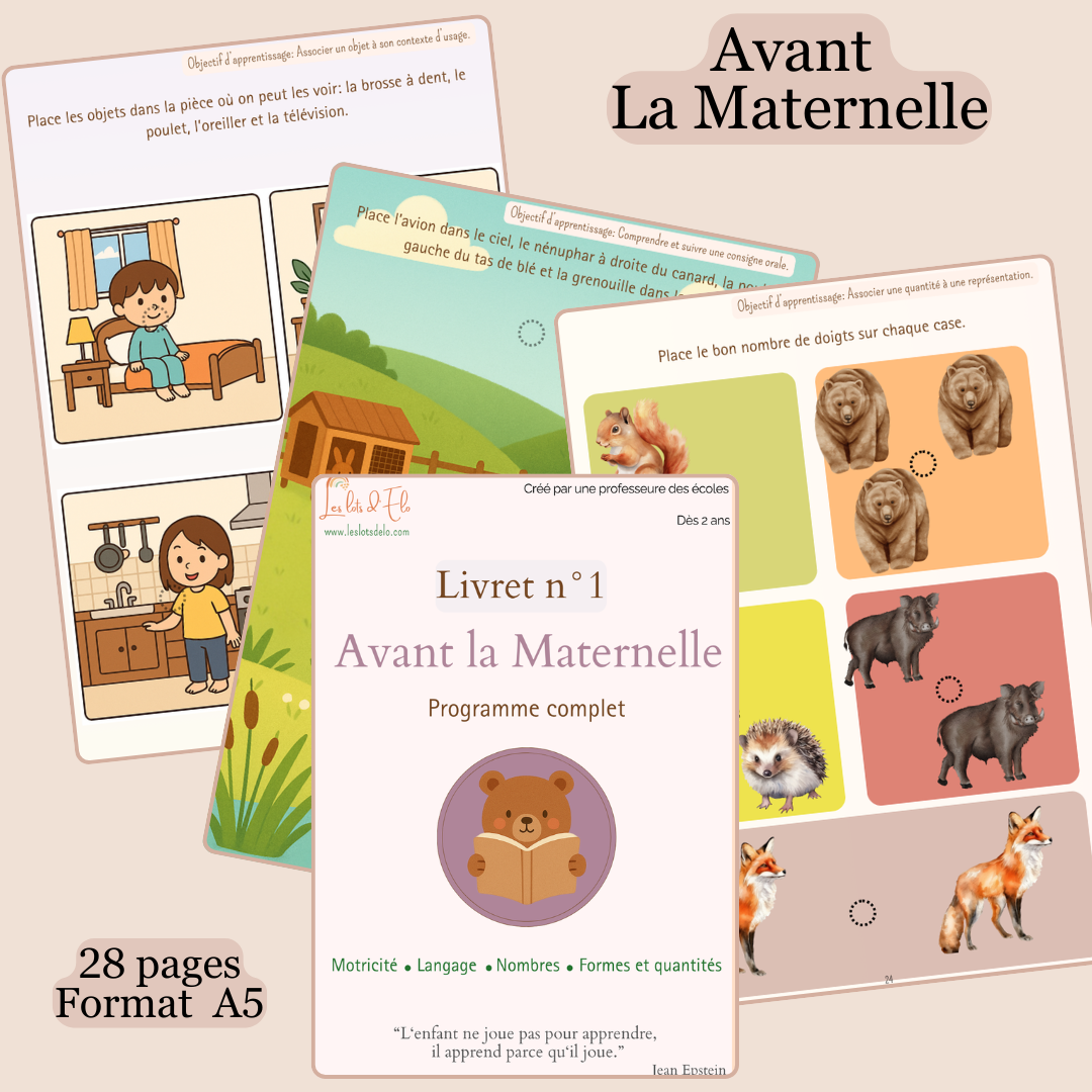 Un livret format A5 de 28 pages pour explorer les apprentissages fondamentaux avant la maternelle : langage, nombres, formes et grandeurs.