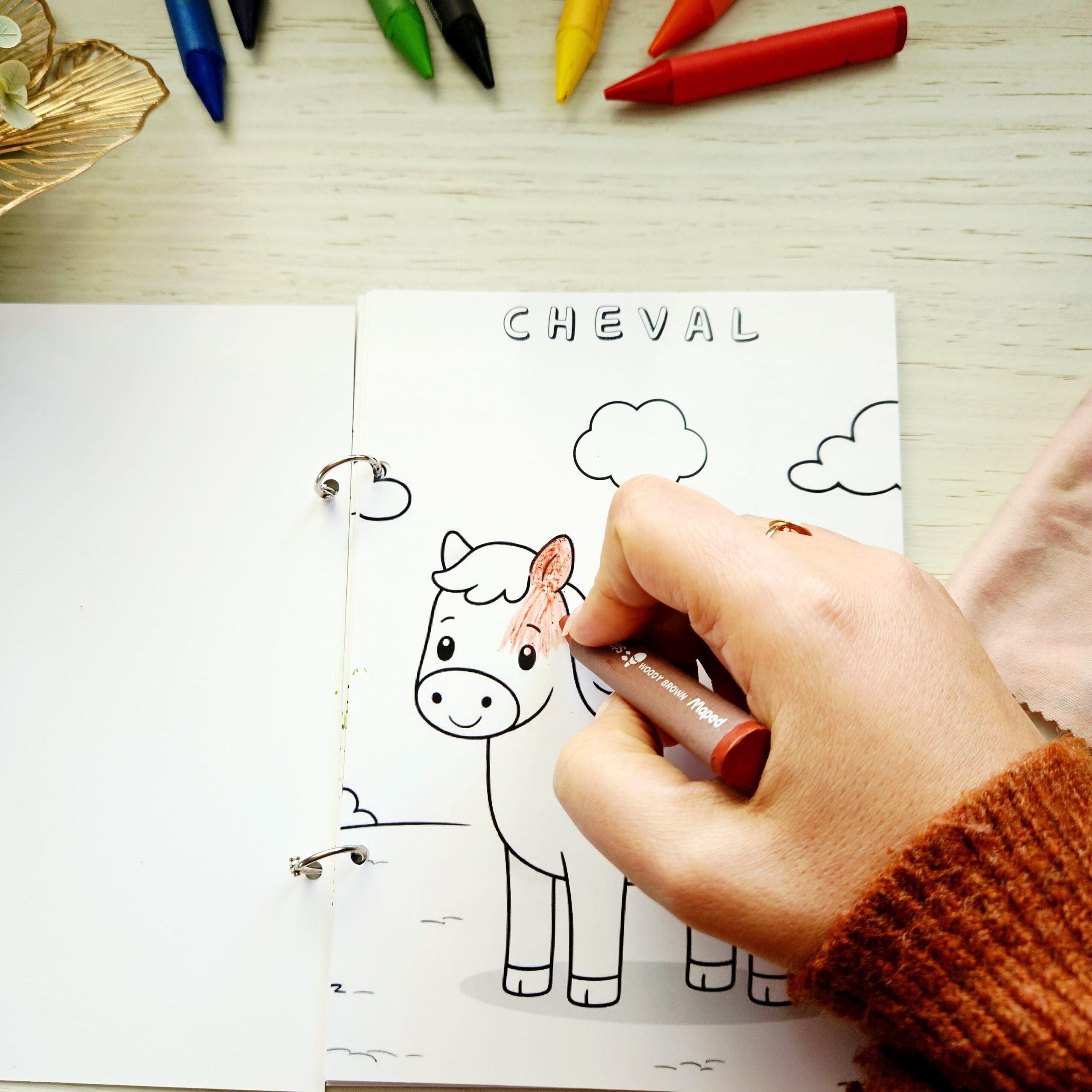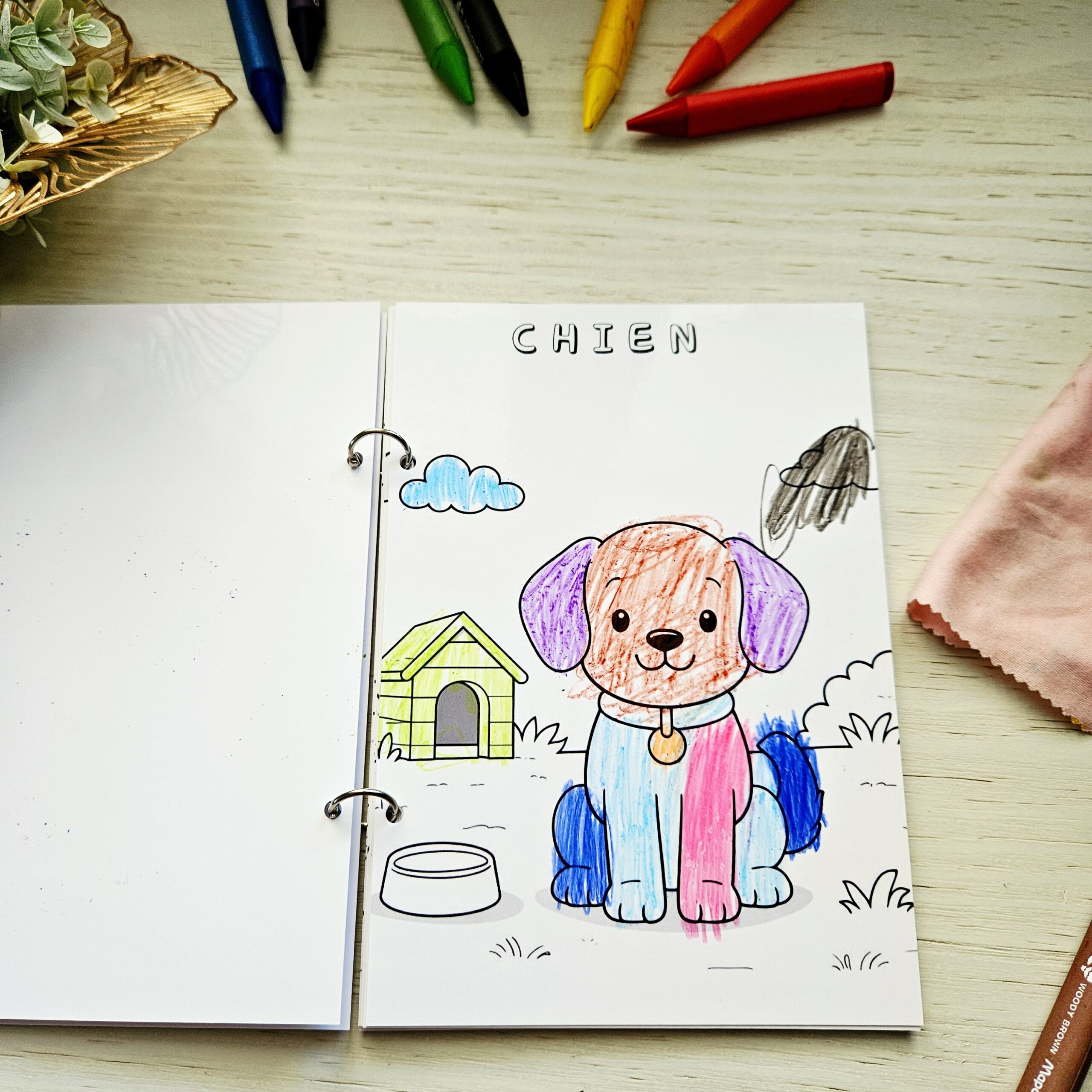 L’enfant peut colorier avec des feutres effaçables ou des pastels, puis recommencer autant de fois qu’il le souhaite grâce au format ardoise.