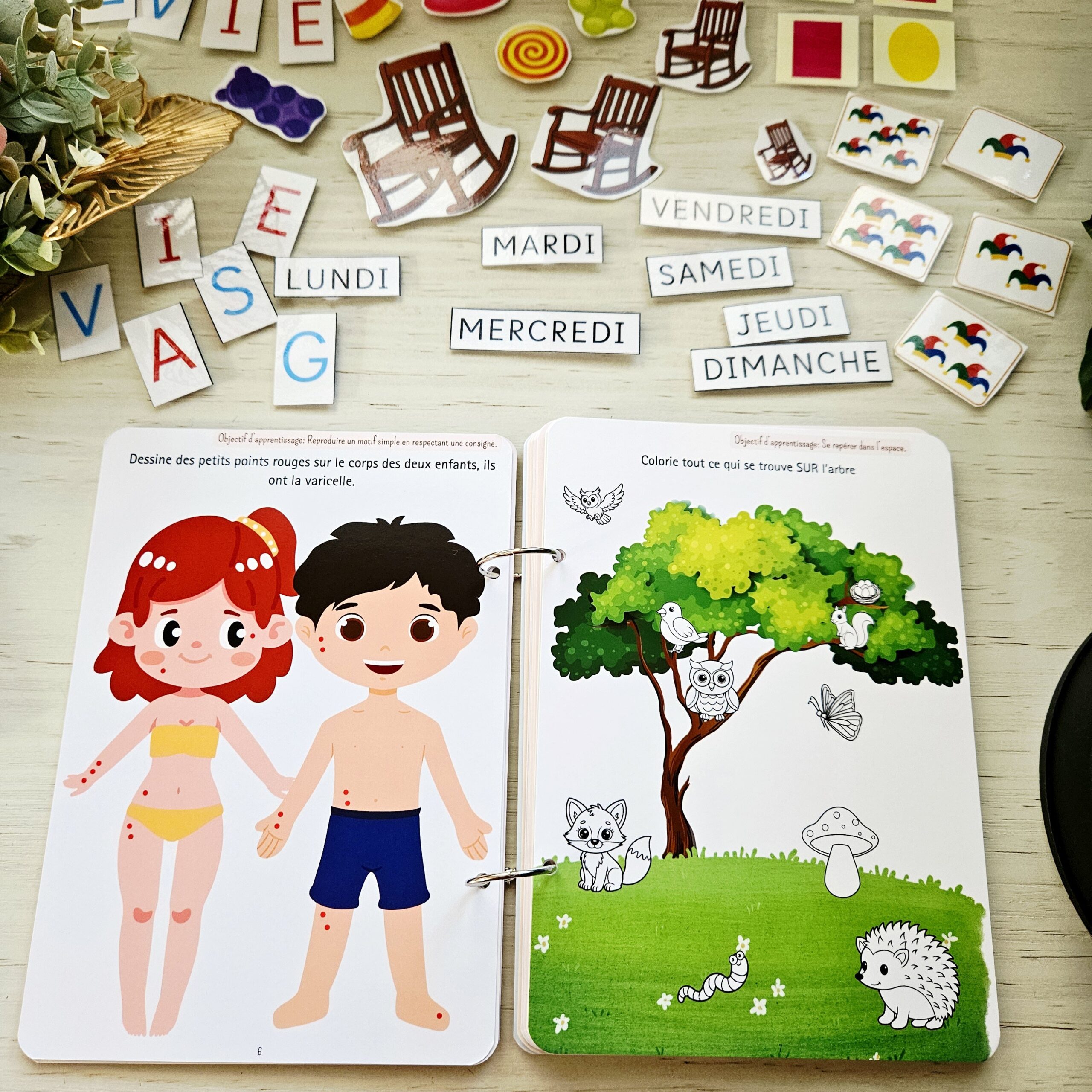 Il a été conçu pour permettre à l’enfant de apprendre en manipulant, grâce à 40 pièces à scratcher intégrées aux activités.