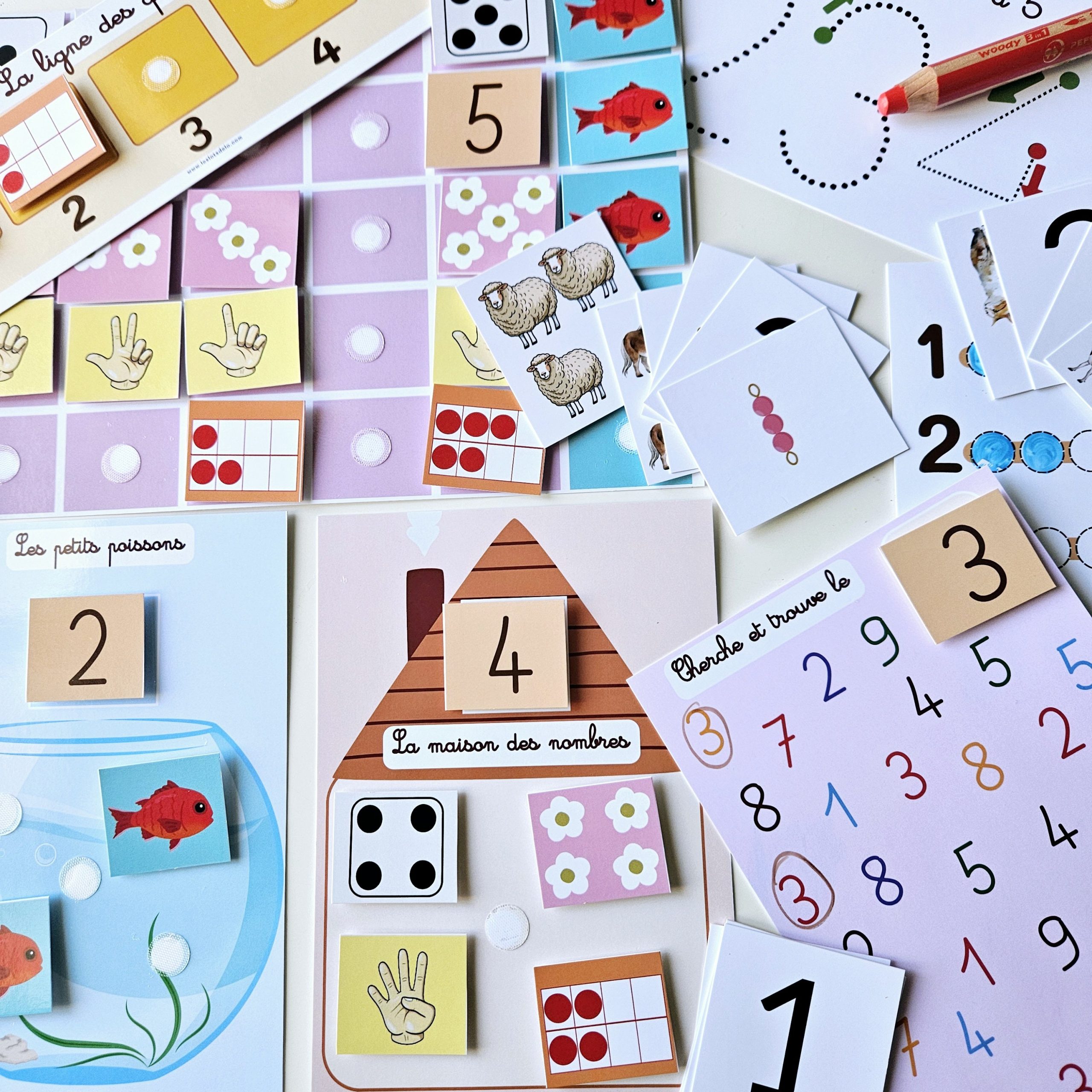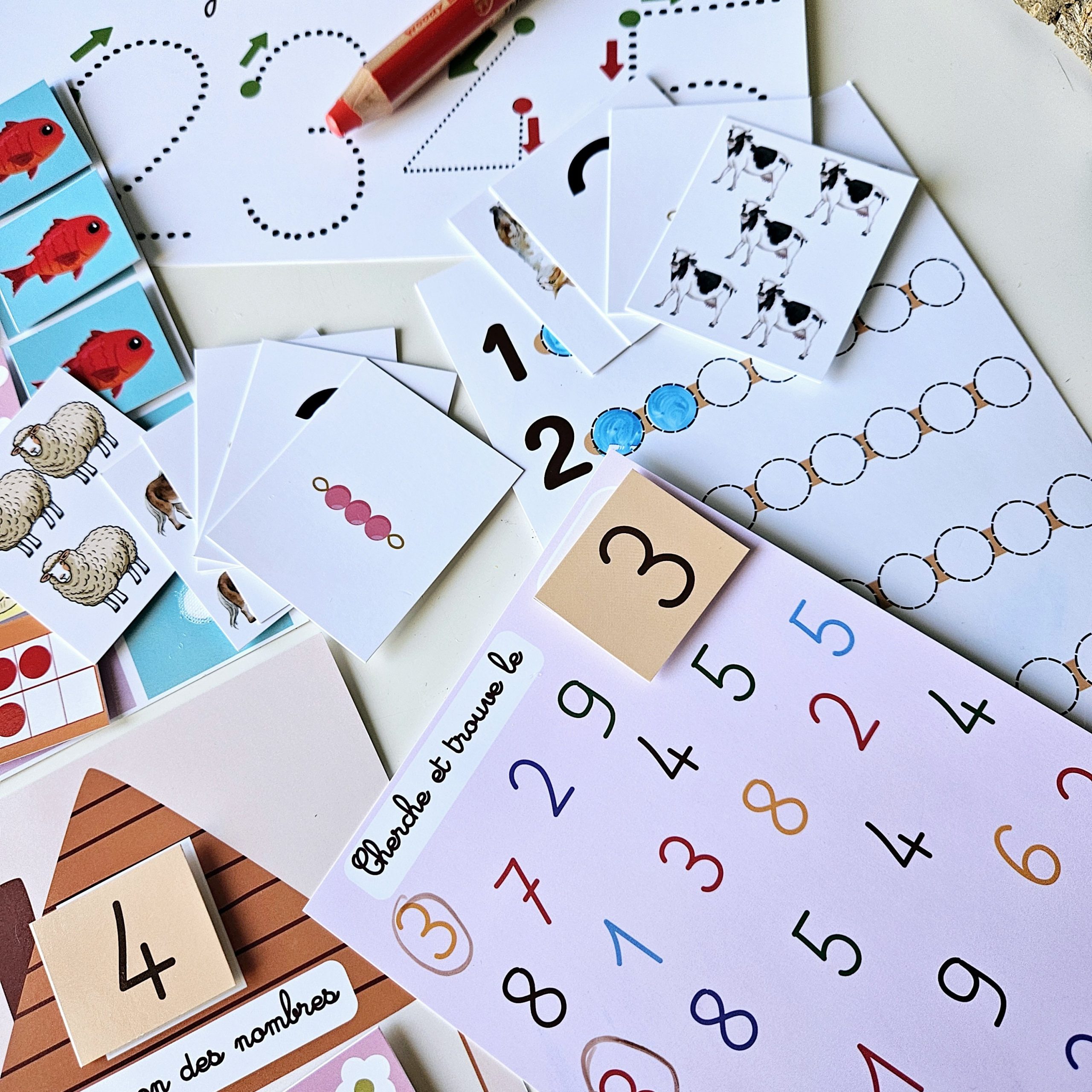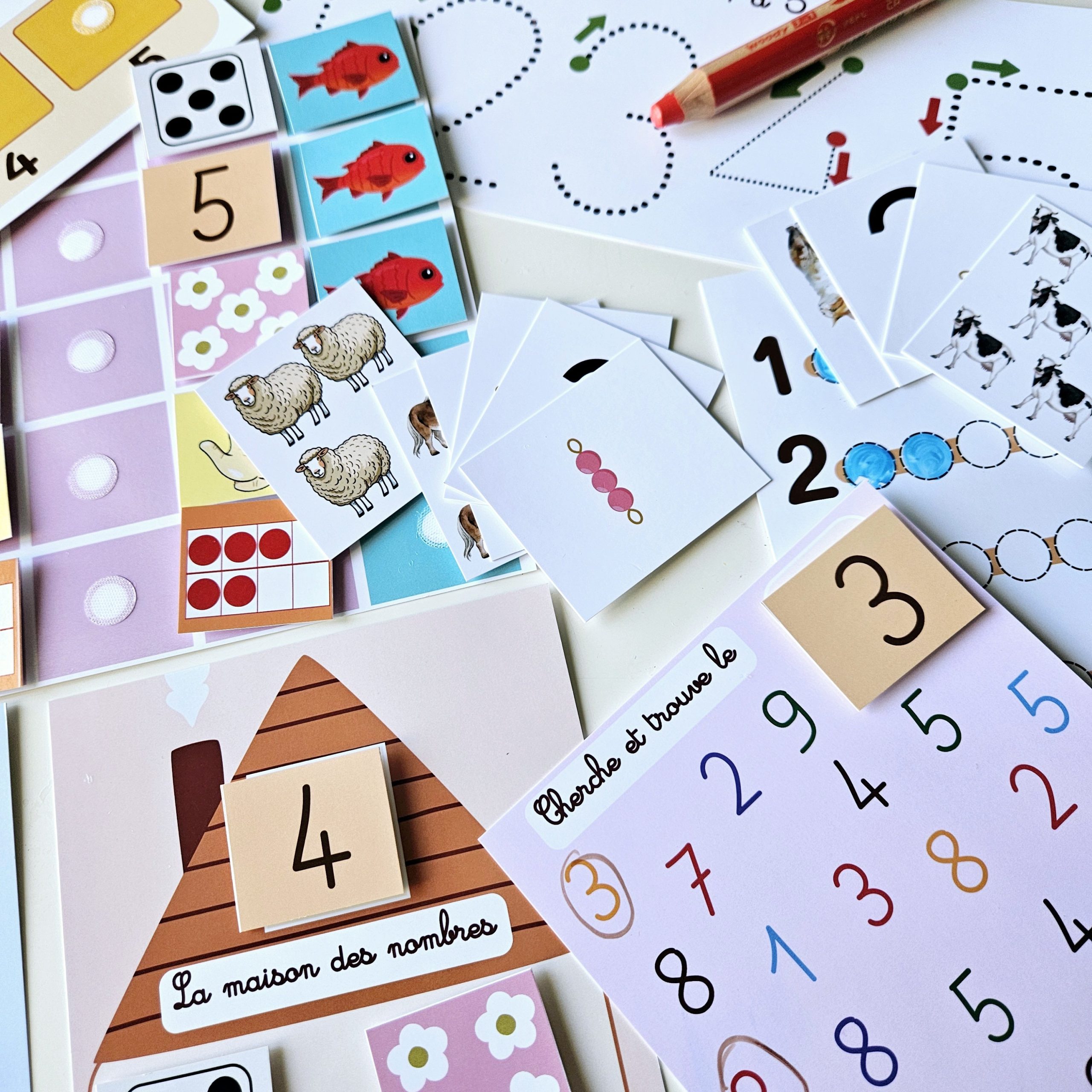 Un pack complet et ludique pour apprendre les nombres de 1 à 5 grâce aux cartes à scratch, aux jeux de manipulation et aux activités variées.