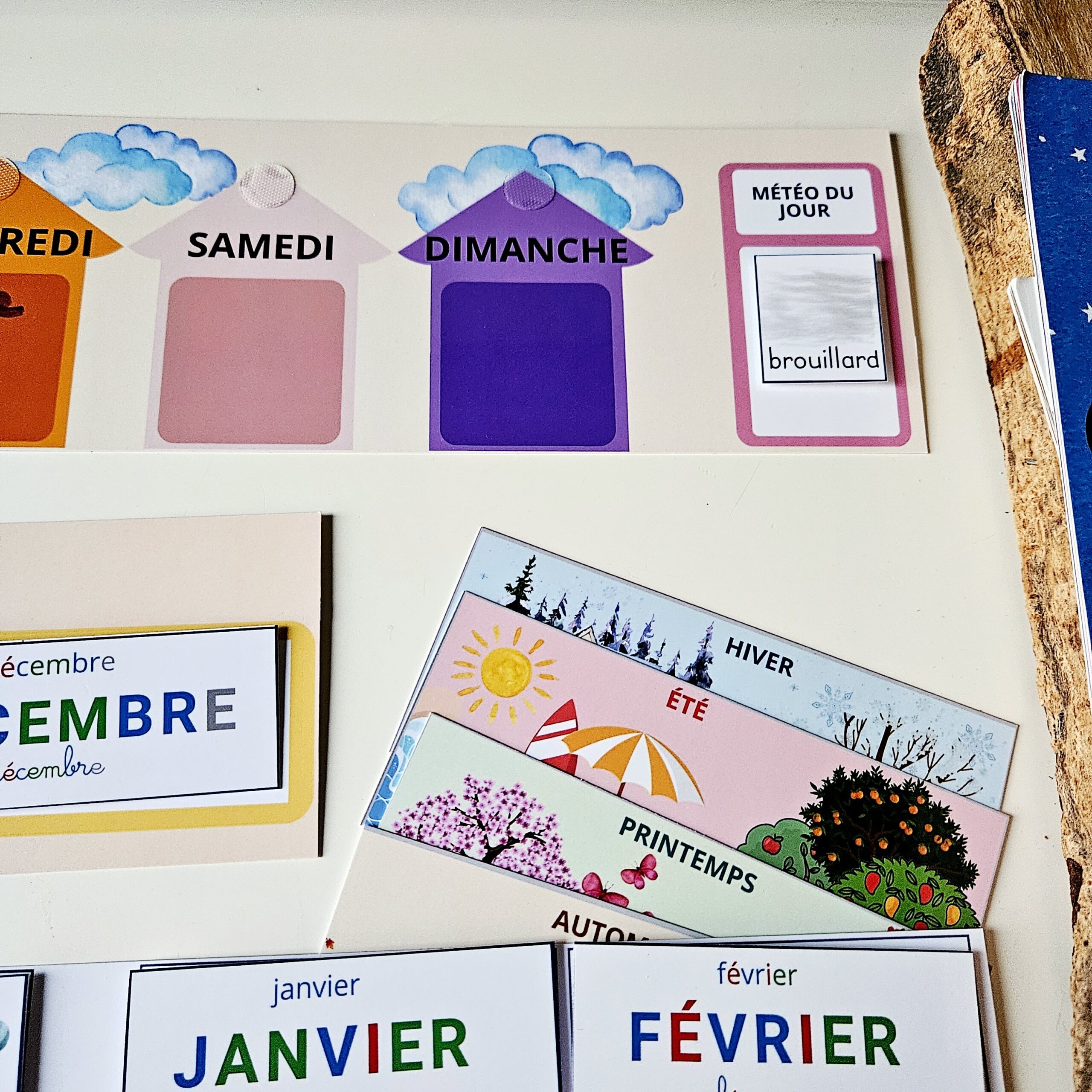 • 2 planches d’étiquettes à découper : jours / chiffres / mois / météo