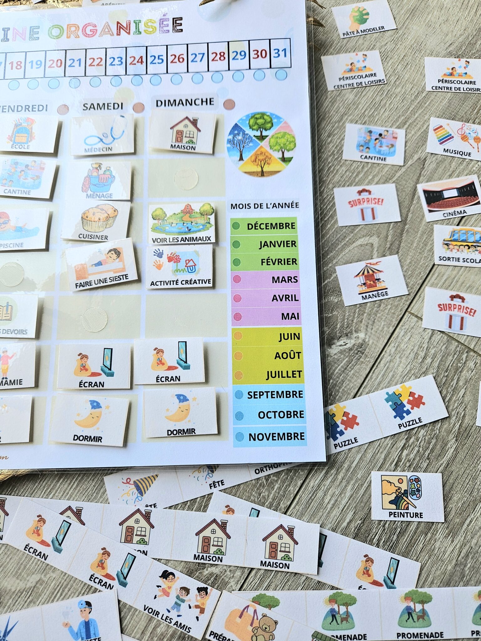 Grand support de qualité comprenant 150 étiquettes pour aider vos enfants à s’organiser et à se repérer dans le temps tout en gagnant en autonomie.
