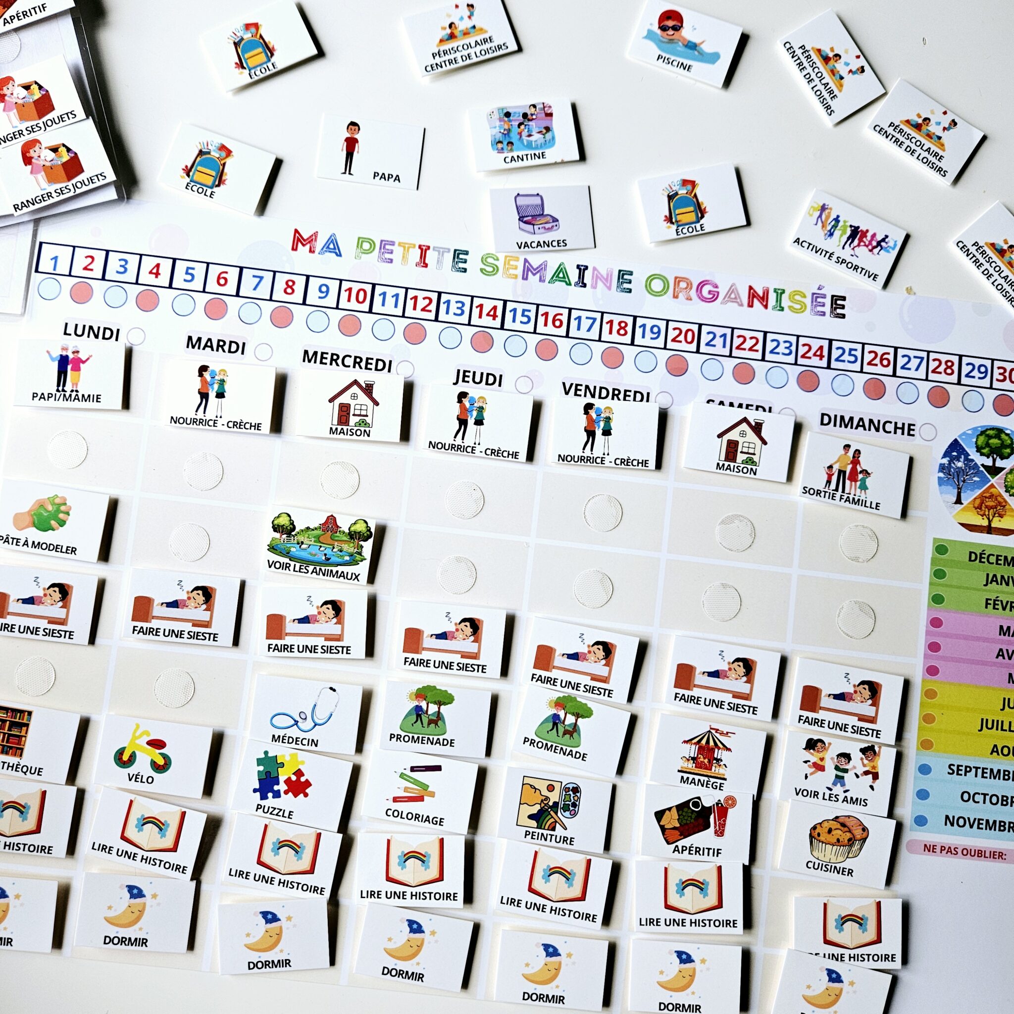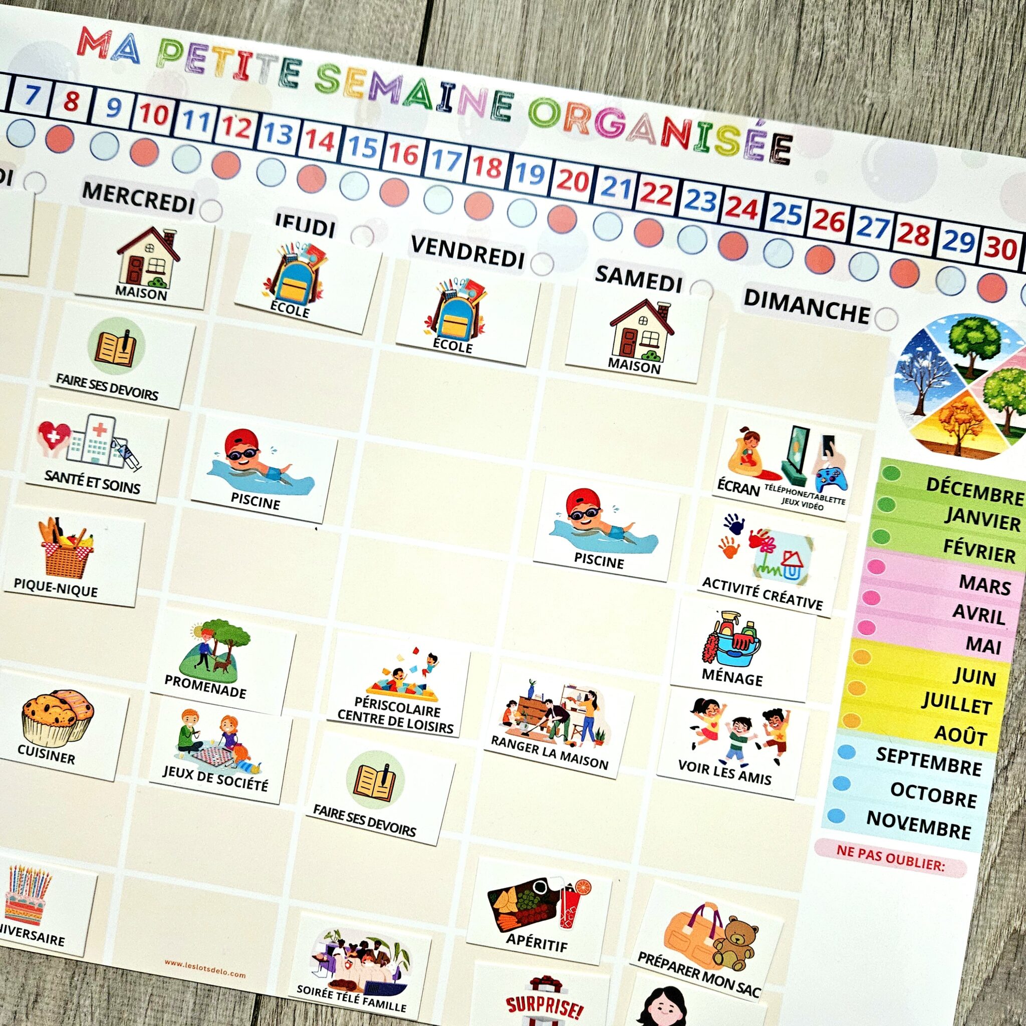 🔹 Renforce la routine : l’enfant visualise ce qui revient chaque semaine